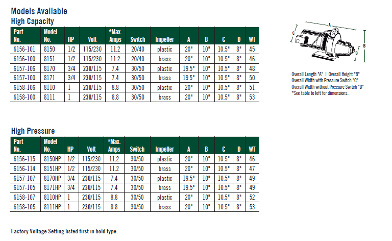 Baker offers a full line of shallow well and convertible jet pumps built for years of trouble free operation, with high-efficiency impellers and diffusers. The 8100 series shallow well capacity is up to 25 gallons per minute (GPM) and pressures to 80 PSI.