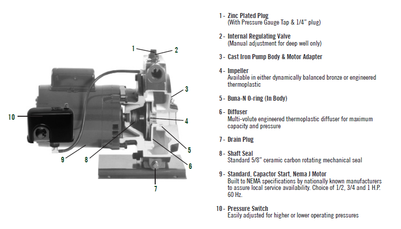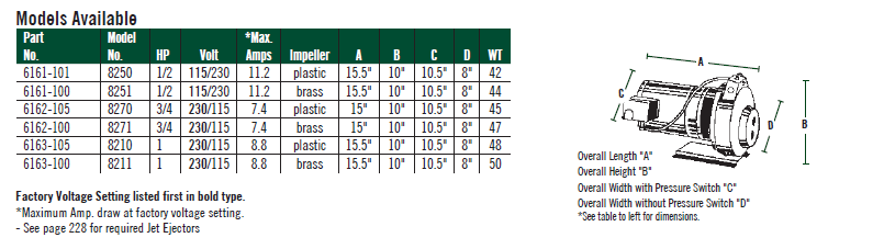 Baker offers a full line of shallow well and convertible jet pumps built for years of trouble free operation, with high-efficiency impellers and diffusers. The 8200 series convertible capacity is up to 65 gallons per minute (GPM) and pressures to 80 PSI.
