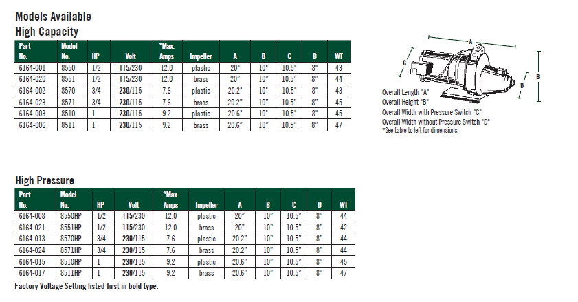 Baker offers a full line of shallow well and convertible jet pumps built for years of trouble free operation, with high-efficiency impellers and diffusers. The 8500 series shallow well capacity is up to 25 gallons per minute (GPM) and pressures to 80 PSI.
