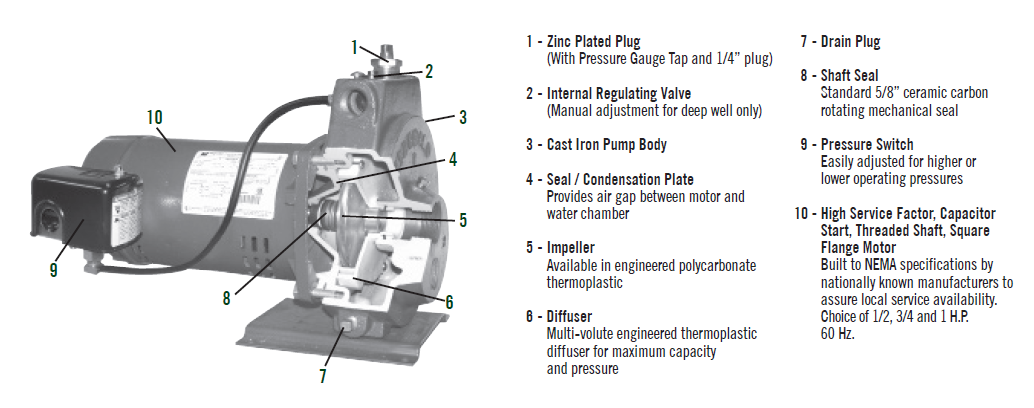 Baker offers a full line of shallow well and convertible jet pumps built for years of trouble free operation, with high-efficiency impellers and diffusers. With appropriate jet ejector the 8600 series convertible capacity is up to 65 gallons per minute (GPM) and pressures to 80 PSI.
