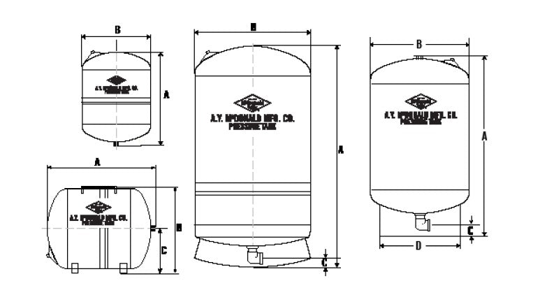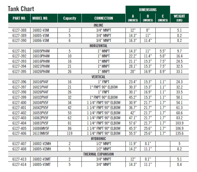 Baker Water Systems DuraMac Horizontal Diaphragm Pressure Tank. Equipped with nylon base and 1" MNPT connection. Steel construction with internal polypropylene lining and chlorobutyl membrane fixed to the tank wall by a steel ring. Factory pre-charged at 40 PSI. 100% factory tested.