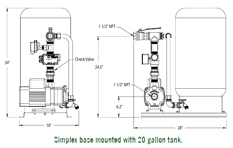 One pump + 20‑gallon tank on a skid.