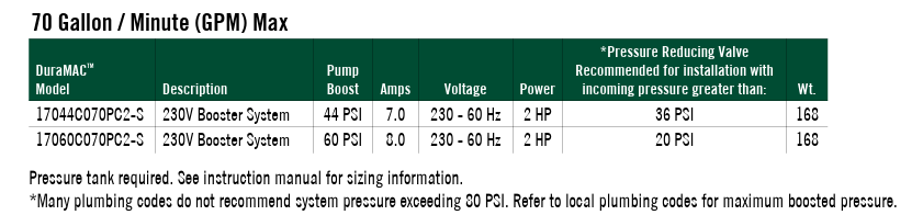 The 304 stainless steel version of the DuraMAC™ Booster pump will meet the needs of boosting water pressure from Reverse Osmosis (RO) systems, low PH and other agressive water applications which would be corrosive to no-lead brass and metal pipes.