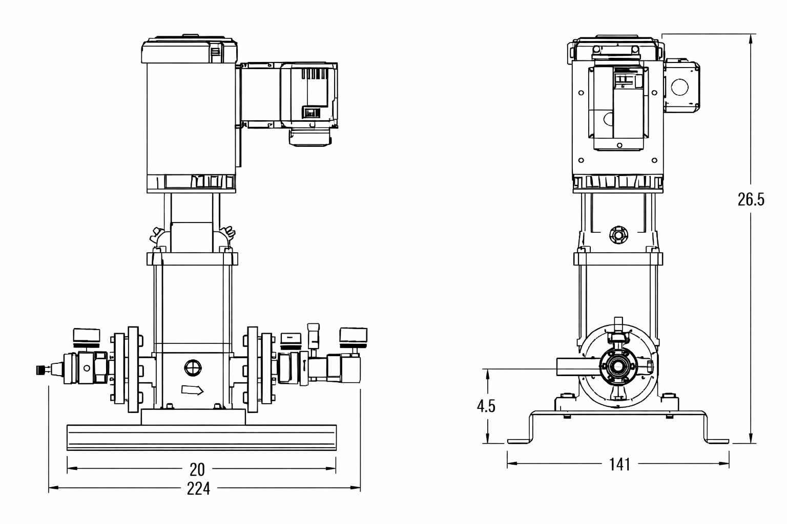 The DuraMAC™ 1 1/2 to 3 HP Vertical Multistage Variable Speed Simplex Booster capable of up to 140 PSI and 40 gallons per minute (GPM). It's simple, versatile, sophisticated, and reliable. The Vertical Multistage Variable Speed Booster System changes motor speed based on demands of the system, which allows users to save energy costs over traditional constant speed booster systems.